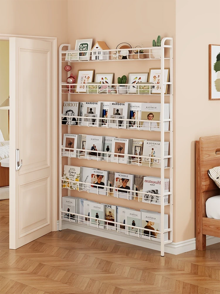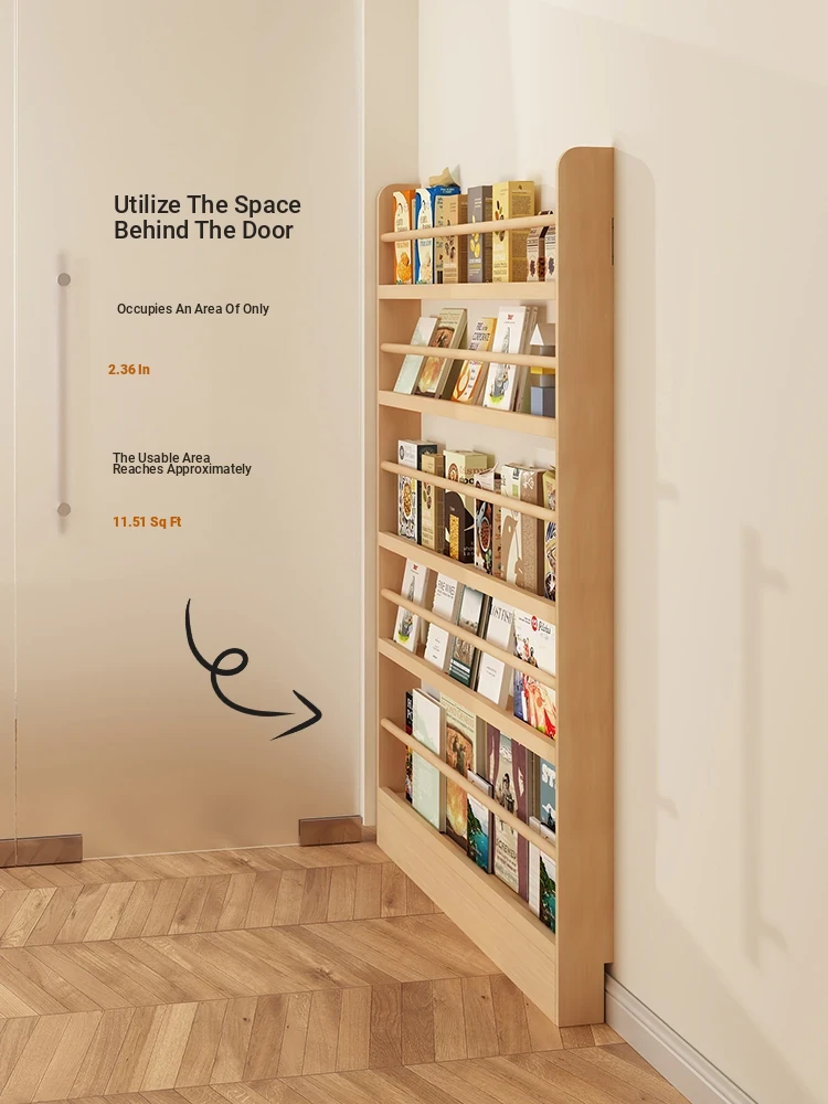 Slim Wall-Mounted Bookshelf - Space-Saving Floor Rack for Home, Perfect for Hallways and Corridors, Ideal for Children's Storybooks and Narrow Spaces.