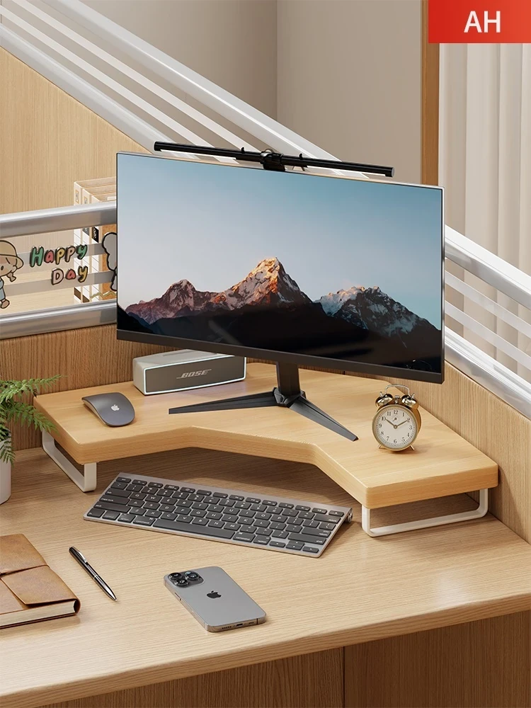 Solid Wood Triangular Computer Monitor Stand - Adjustable Height Corner Desk Organizer for Desktop, Perfect for Office Use
