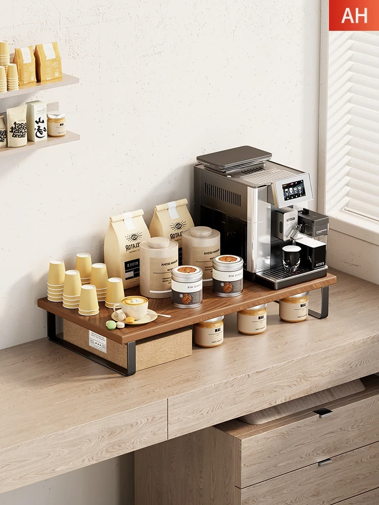 Solid Wood Coffee Machine Storage Shelf - Elevated Desktop Organizer for Tea and Water Stations, Perfect for Tea Sets and Coffee Mug Storage