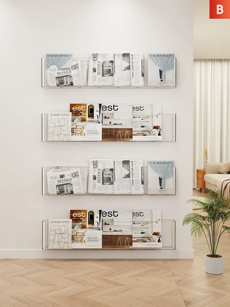 Wall-Mounted Transparent Bookshelf Magazine Rack - No Drilling Required, Perfect for Kids' Picture Books and Hallway Display, Ideal for Door Space Storage