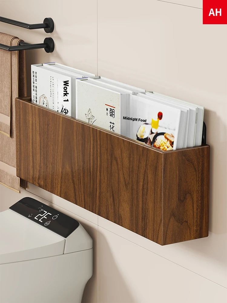 Wall-Mounted Wooden Bathroom Storage Box - No Drill Required, Perfect for Holding Books and Magazines Next to the Toilet, Ideal Reading Rack for Your Bathroom