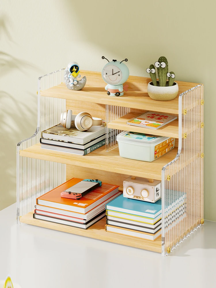 Acrylic Kids Desk Bookshelf - Multi-Layer Storage Rack for Books, Cosmetics & Miscellaneous Items - Perfect for Organizing Your Child's Space!