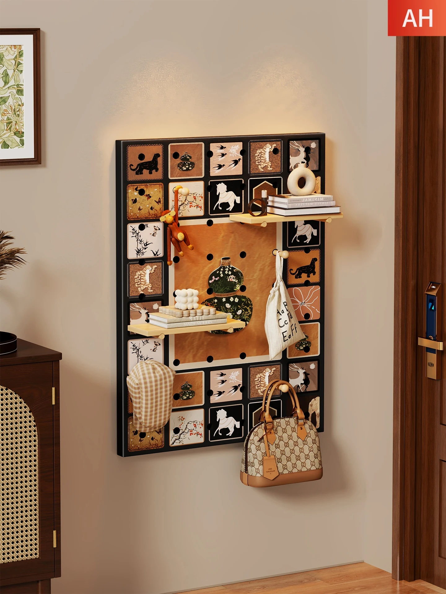Wall-Mounted Wooden Pegboard Organizer - Stylish Display Shelf for Entryway, Perfect for Storage and Decoration of Miscellaneous Items