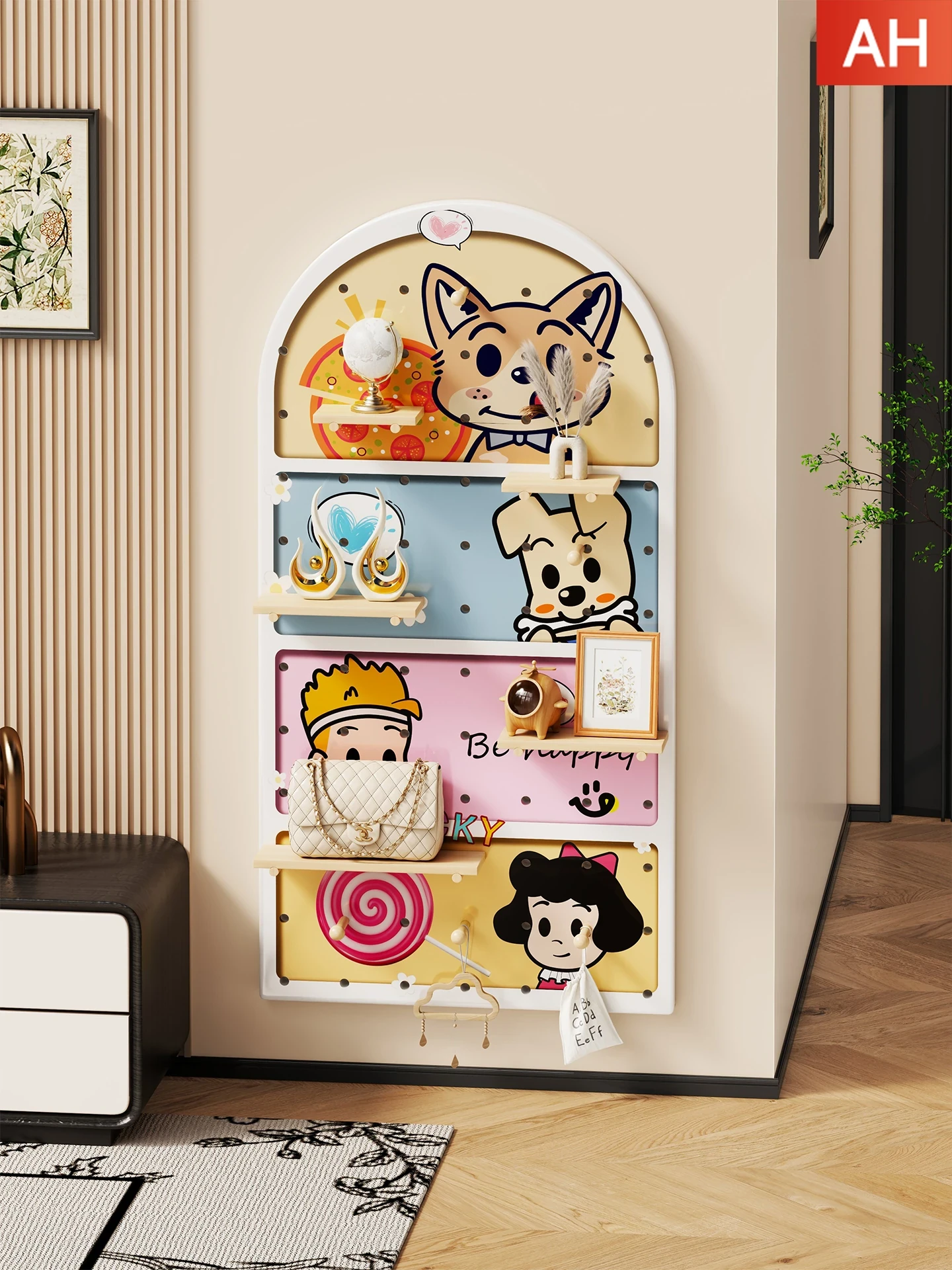 Multi-Functional Perforated Wall Storage Rack - Perfect for Entryway, Living Room, and Hallway Display - Organize and Showcase Your Essentials with Style!