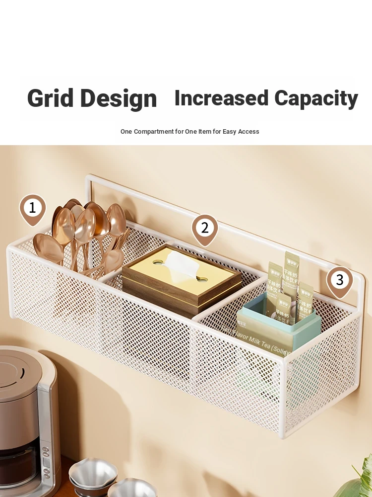 Adjustable Wall-Mounted Desk Organizer - No Drilling Required! Perfect for Office Spaces, Featuring Hooks and Baskets for Efficient Desktop Storage Solutions.