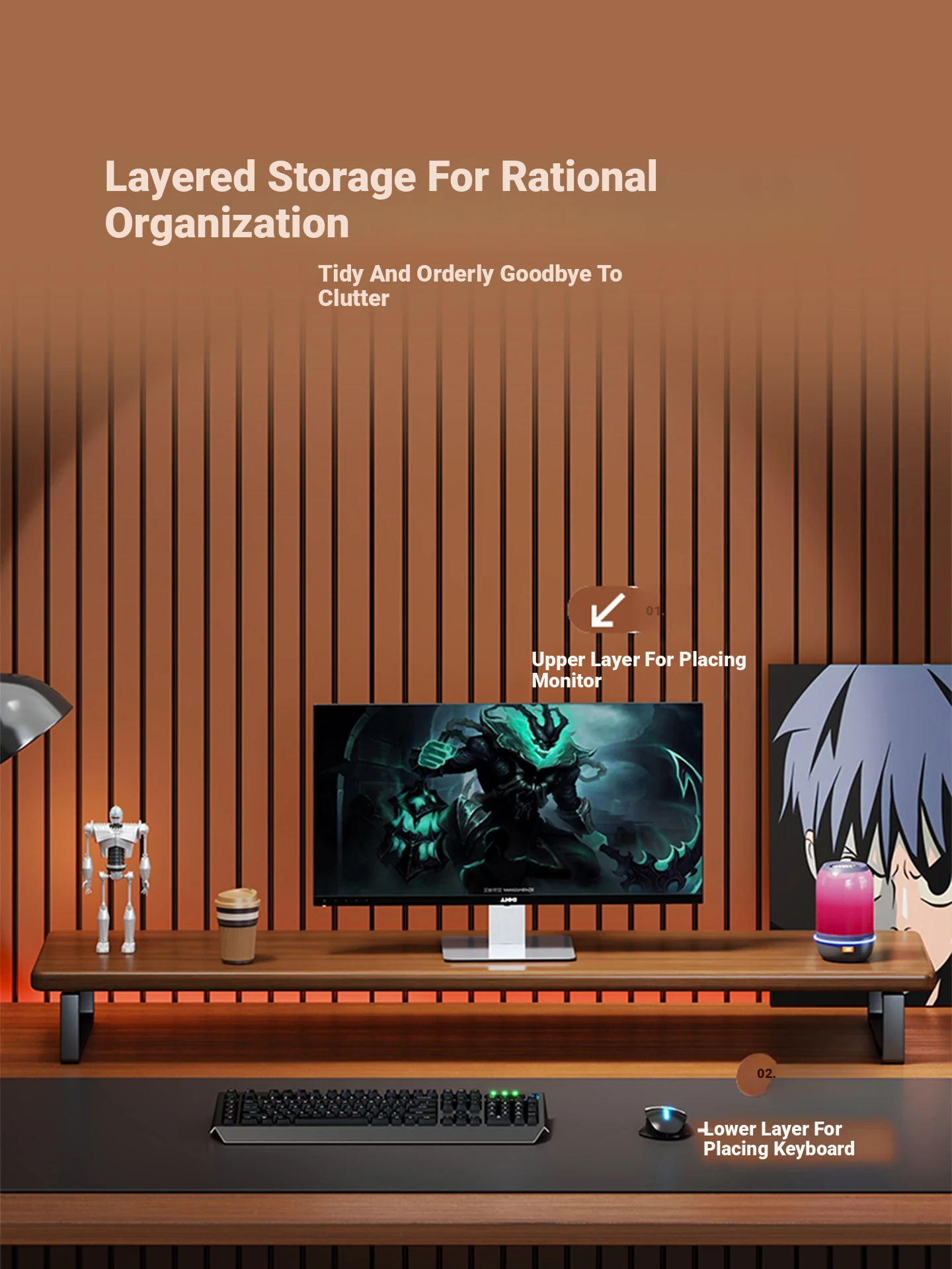 Adjustable Monitor Stand for Desktop - Ergonomic Laptop Riser with Storage Space for Office Workstations - Elevate Your Workspace and Organize Your Desk!