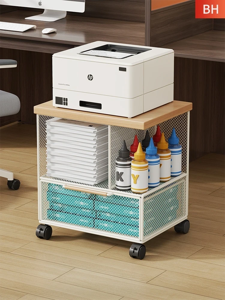 Multifunctional Printer Stand with Wheels - Multi-Tiered Office Storage Rack for Copiers and Books, Ideal for Home and Office Organization