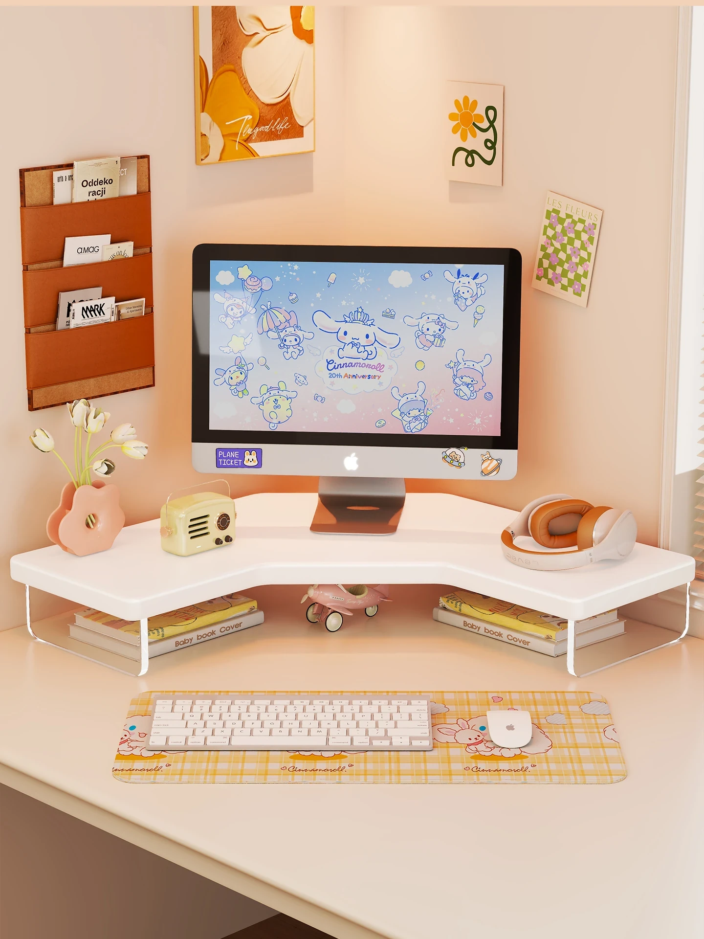 Elevated Monitor Stand for Office Desks – Stylish Storage Solution for Women’s Workstations, Laptop Support and Organizer Rack, Perfect for a Clutter-Free Workspace