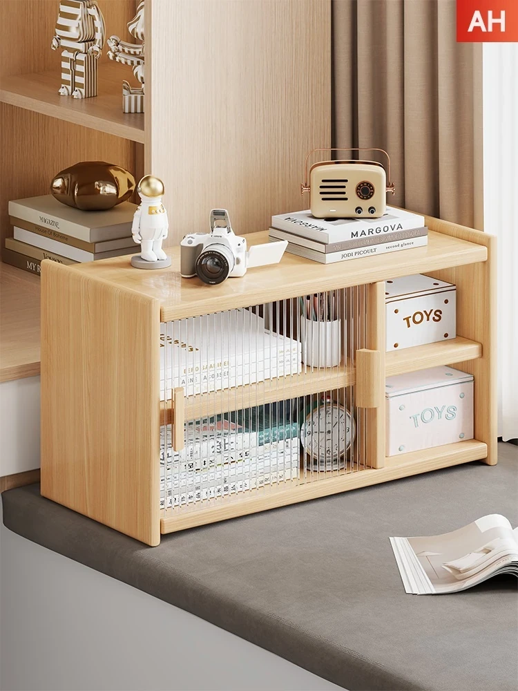 Wooden Bay Window Storage Cabinet - Simple Book Shelf for Bedroom, Ideal for Children's Picture Book Organization and Home Storage Solutions.