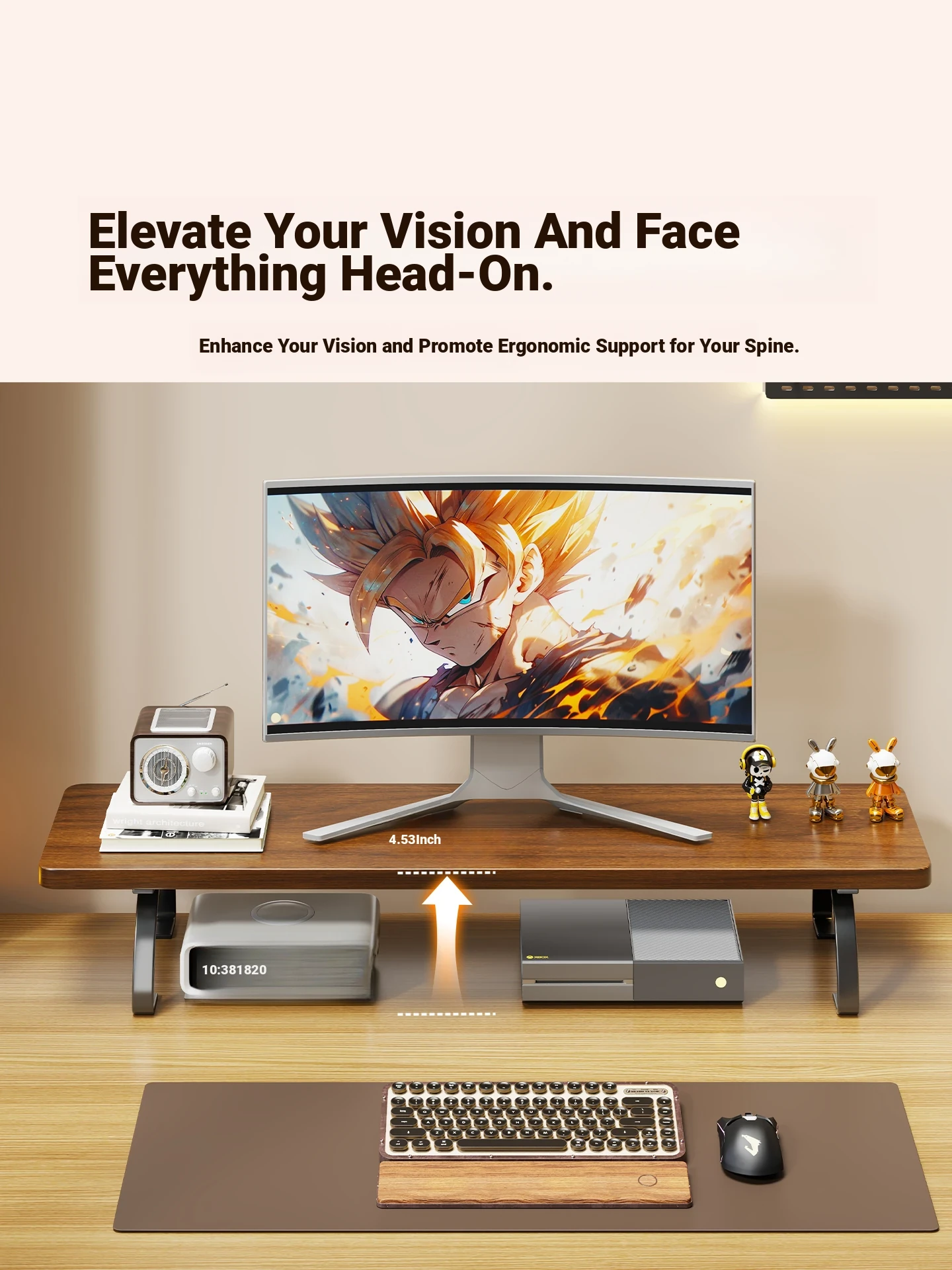 Adjustable Monitor Stand for Desktop Computers - Elevate Your Workspace with This Ergonomic Gaming and Office Display Riser - Perfect for PCs and Accessories Storage
