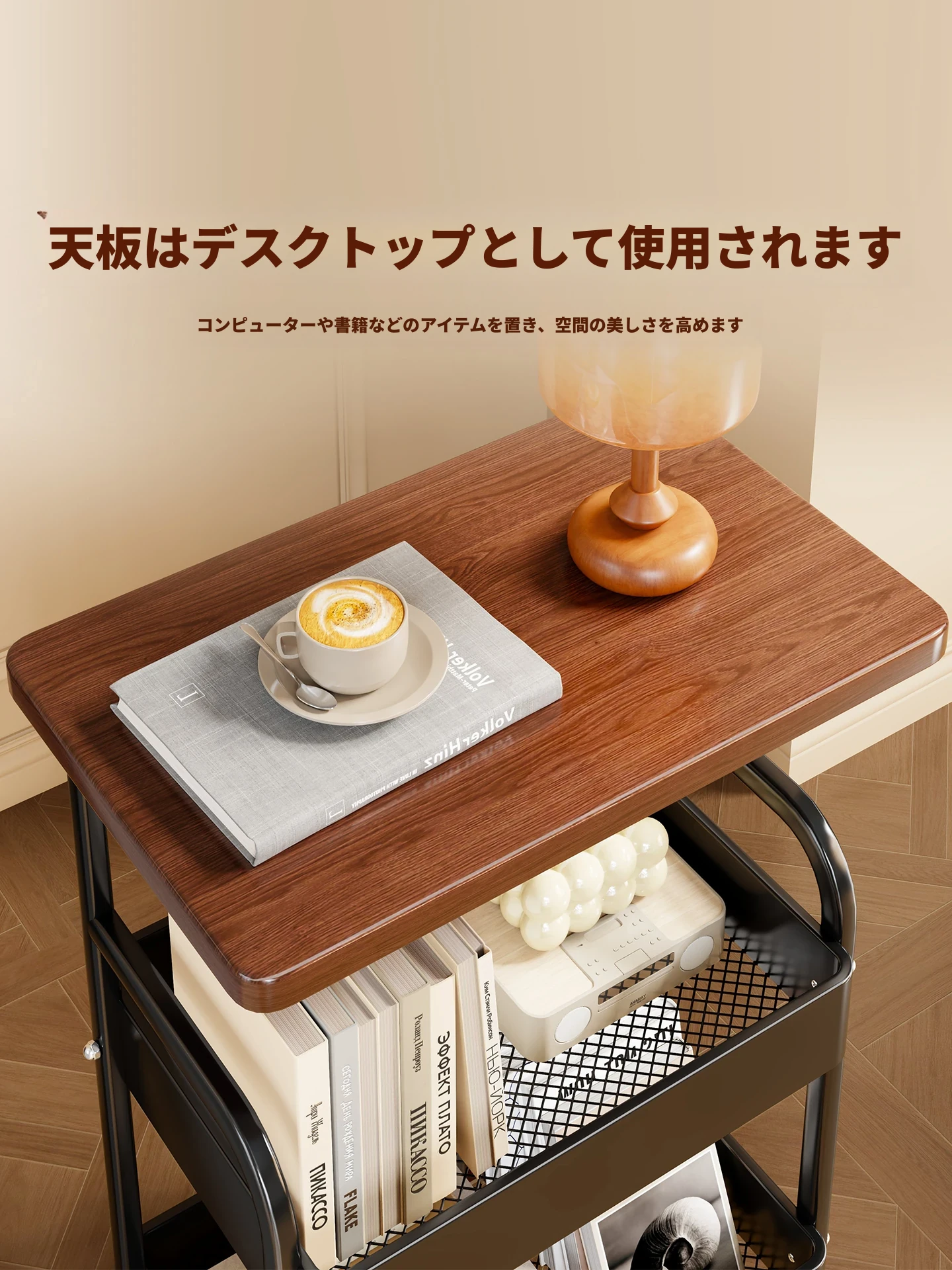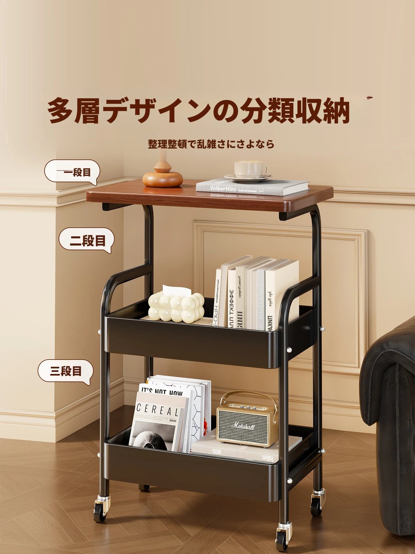 中古の移動式小型キャビネット - リビングや寝室に最適なサイドテーブル!おしゃれな収納ラックで、スナックや小物をすっきり整理。使い勝手抜群の便利アイテムです!
